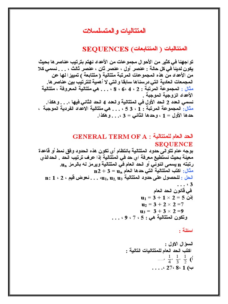 بحث عن المتتابعات والمتسلسلات الحسابية Pdf
