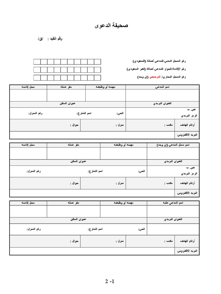 نموذج رفع دعوى قضائية السعودية