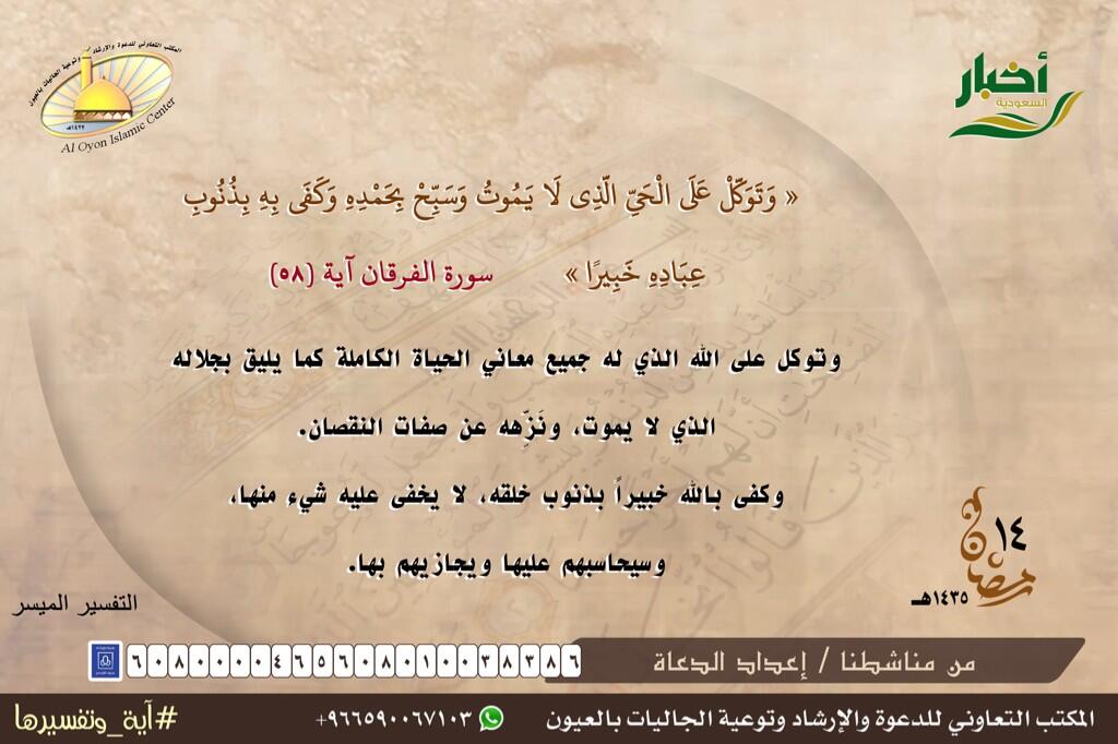أخبار السعودية No Twitter آية وتفسيرها قال تعالى وتوكل على الحي الذي لايموت وسبح بحمده وكفى به بذنوب عباده خبيرا رمضان Http T Co Omdynbidxv