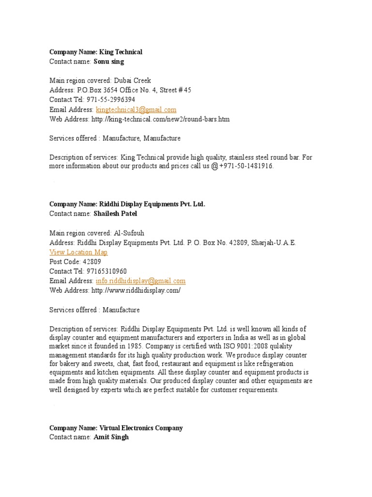 List Of Companies In Uae With Contact Details Pdf