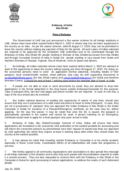 Uzivatel India In Uae Na Twitteru Press Release On Waiver Of Visa Fines Download Link Https T Co C5nfgn6co6 Cgidubai Helppbsk Indiandiplomacy