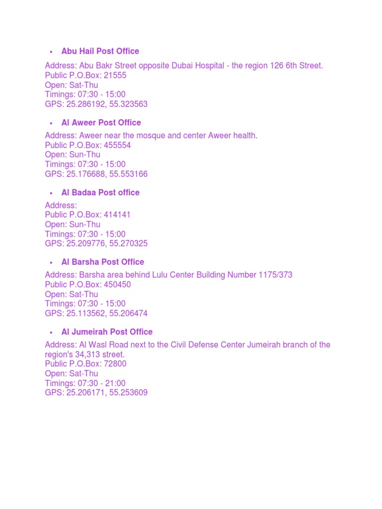 Dubai Post Office List